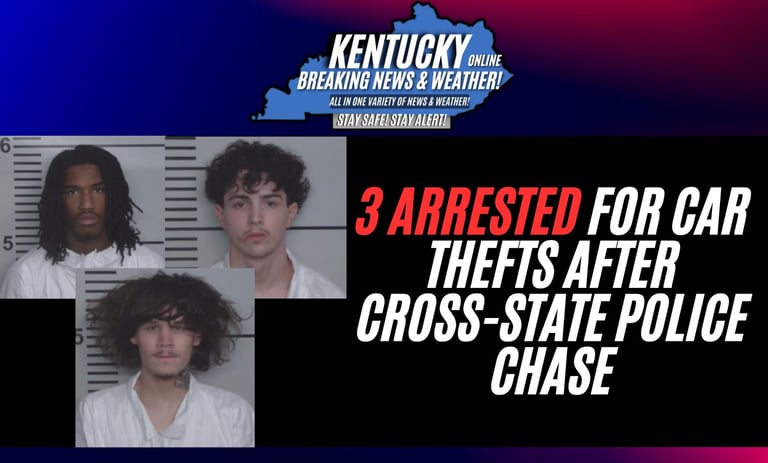 LOUISVILLE, Ky. — Three 18-year-olds were arrested Sunday night following a police pursuit and are believed to be involved in an organized vehicle theft operation, according to Louisville Metro Police.